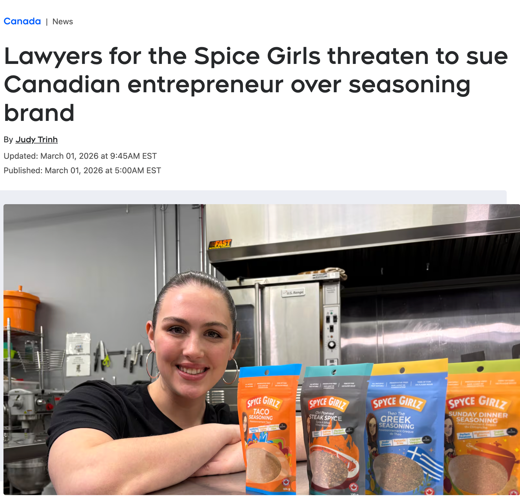 ctv the national: spice girls threatens to sue spyce girlz seasonings over trademark